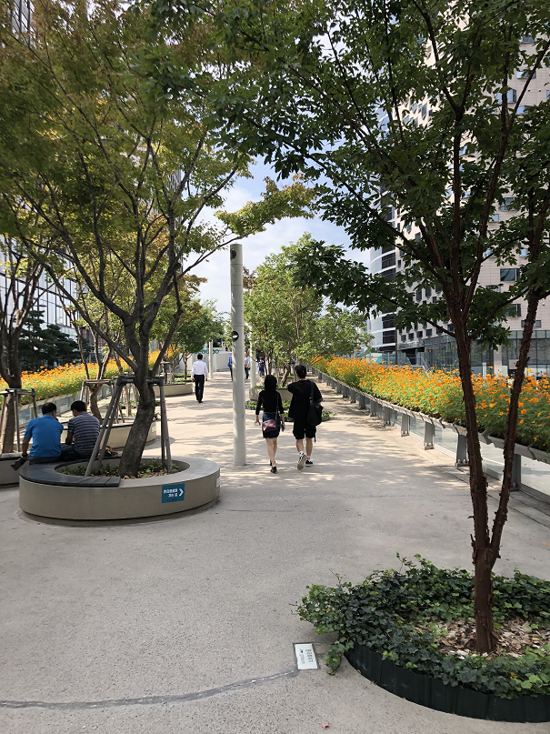 크진 않지만, 날씨 좋을 때는 저 멀리 남산타워도 보이고. 서울로7017과 연결도 되어 있고.