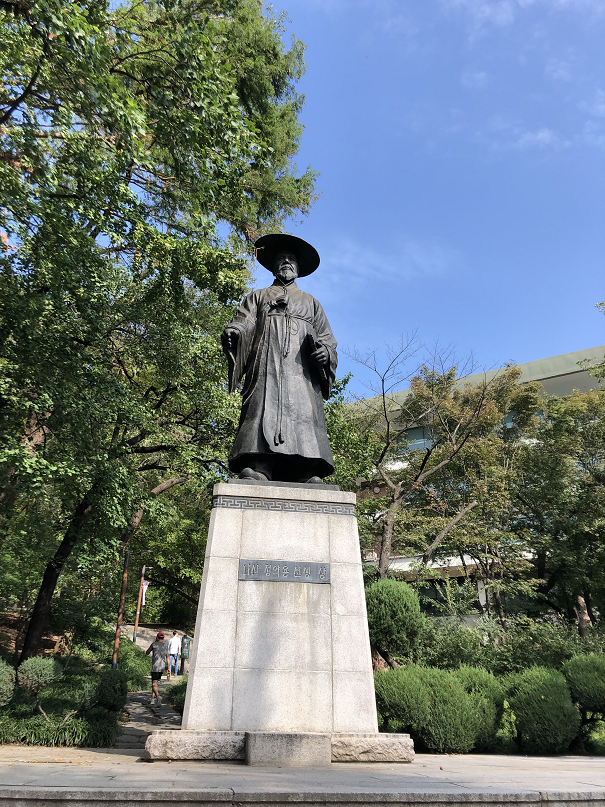 다산 정약용 선생 상.  이 공간의 묘한 부분이, 조금만 더 가서 있는 안중근 의사 기념관은 중구 소속이라는 것.