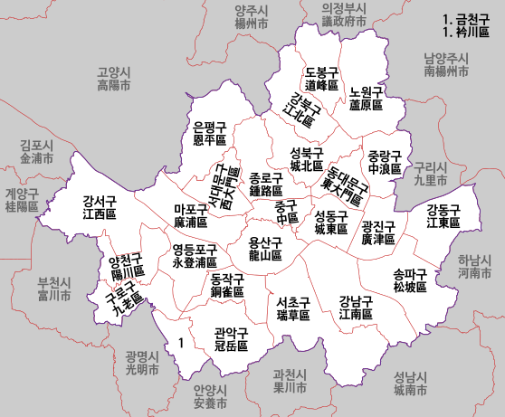 경기도에 둘러쌓여 있고, 25개 자치구로 구성되어 있다.