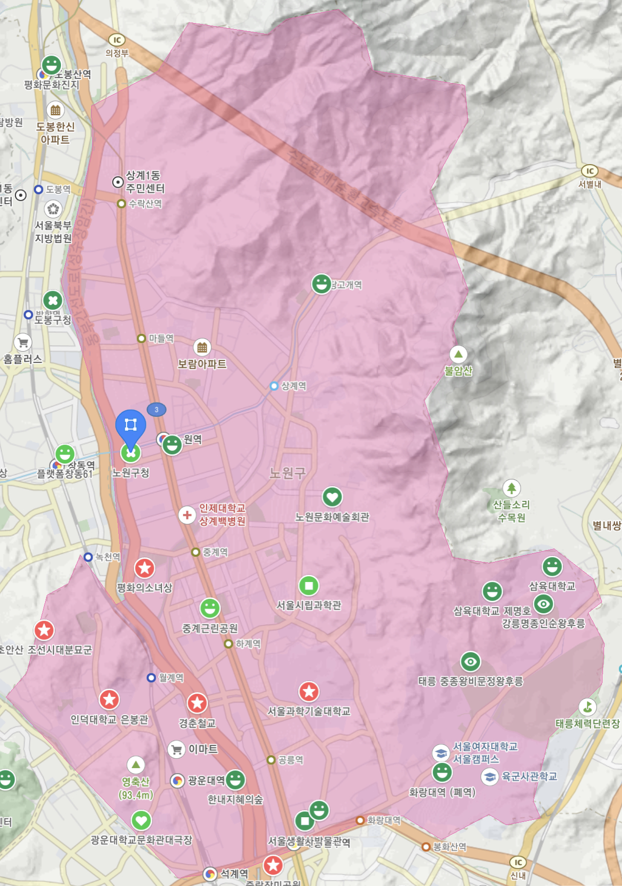 7호선 : 공릉역, 하계역, 중계역, 마들역, 수락산역