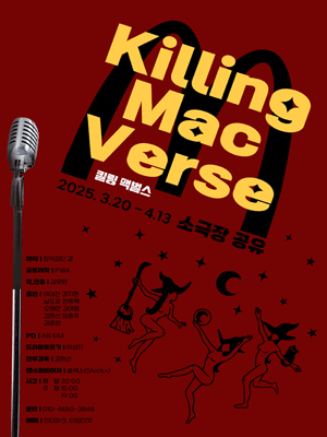 | 힙합X무용극 킬링맥벌스 | 소극장 공유 (구.키작은 소나무) | 2025-03-20 | 2025-04-13 |