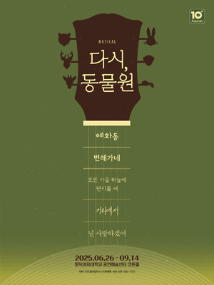 | 뮤지컬 〈다시, 동물원〉 | 동덕여대 공연예술센터 코튼홀 | 2025-06-25 | 2025-09-14 |