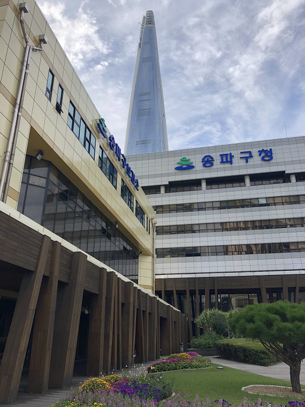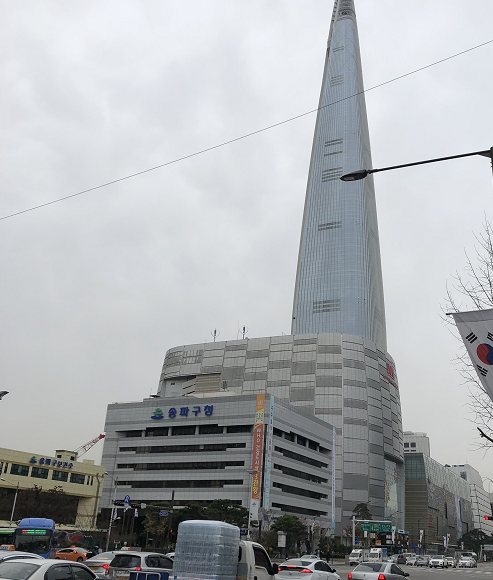 송파구청을 찍으려고 한건데, 롯데타워가 같이 찍히다니.