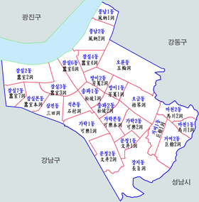 - 풍납동, 거여동, 마천동, 방이동, 오금동, 송파동, 석촌동, 삼전동, 가락동, 문정동, 장지동, 잠실동, 신천동