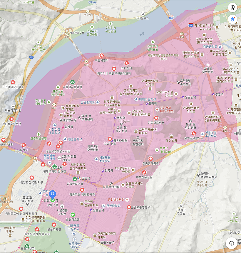 난 송파구가 서울 동쪽 끝이다고 생각했었는데, 아니구나... 라는걸 깨달음.